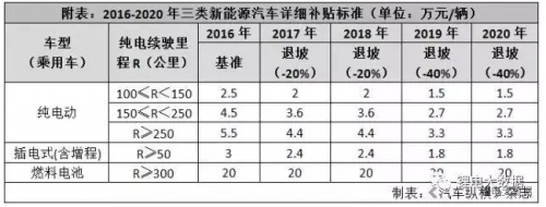 ②免征購置稅今年底結束,2018年現行補貼標準退坡20%。其中,乘用車、專用車補貼退坡約20%,客車退坡30%-50%,地方配套補貼比例由1∶1下降至1∶0.5。嚴重依賴政府的補貼來"哺育"的新能源車企一時受到了嚴重打擊,要求動力電池企業大幅降價。