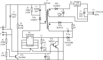 下面是一種針對有掉電保護功能的復合型開關電源,電路圖如下所示: