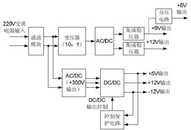 在實際應(yīng)用中,單路輸出的電源模塊有時無法滿足一些特殊設(shè)備的要求,這些設(shè)備一般要求電源要有雙路、三路甚至多路輸出的功能。下面介紹一種電源模塊多路穩(wěn)壓的設(shè)計方案,說明ACDC電源模塊中的整流電路、DCDC電路、保護(hù)電路等工作原理及設(shè)計部分。