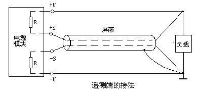 如上圖所示:目前多數低壓大電流輸出的電源模塊都有遙測端+S 和-S ,使電源內部反饋控制電路通過檢測線和負載相連接,補償大電流線路壓降對負載效應值的影響。圖中給出了遙測端和負載的連接方法,檢測線和輸出大電 流負載線分離,而遙測端直接檢測負載兩端電壓。這種方法是利用提高輸出端電壓來維持負載兩端的電壓值,其中遙測端與負載的連線應盡可能屏蔽,避免電磁干擾影響電源內部的反饋控制電路。一般在遙測端與電源輸出端之間有一只電阻,假如遙測端由于粗心沒有連接到負載端上,可防止輸出端電壓上升過高。當遙測端不用,應分別和電源正負端短接。