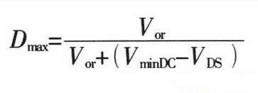 1、MOSFET開關管工作的最大占空比Dmax如上式:Vor為副邊折射到原邊的反射電壓,當輸入為AC220V時反射電壓為135V,VminDC為整流后的最低直流電壓,VDS為MOSFET功率管導通時D與S極間電壓,一般取10V。